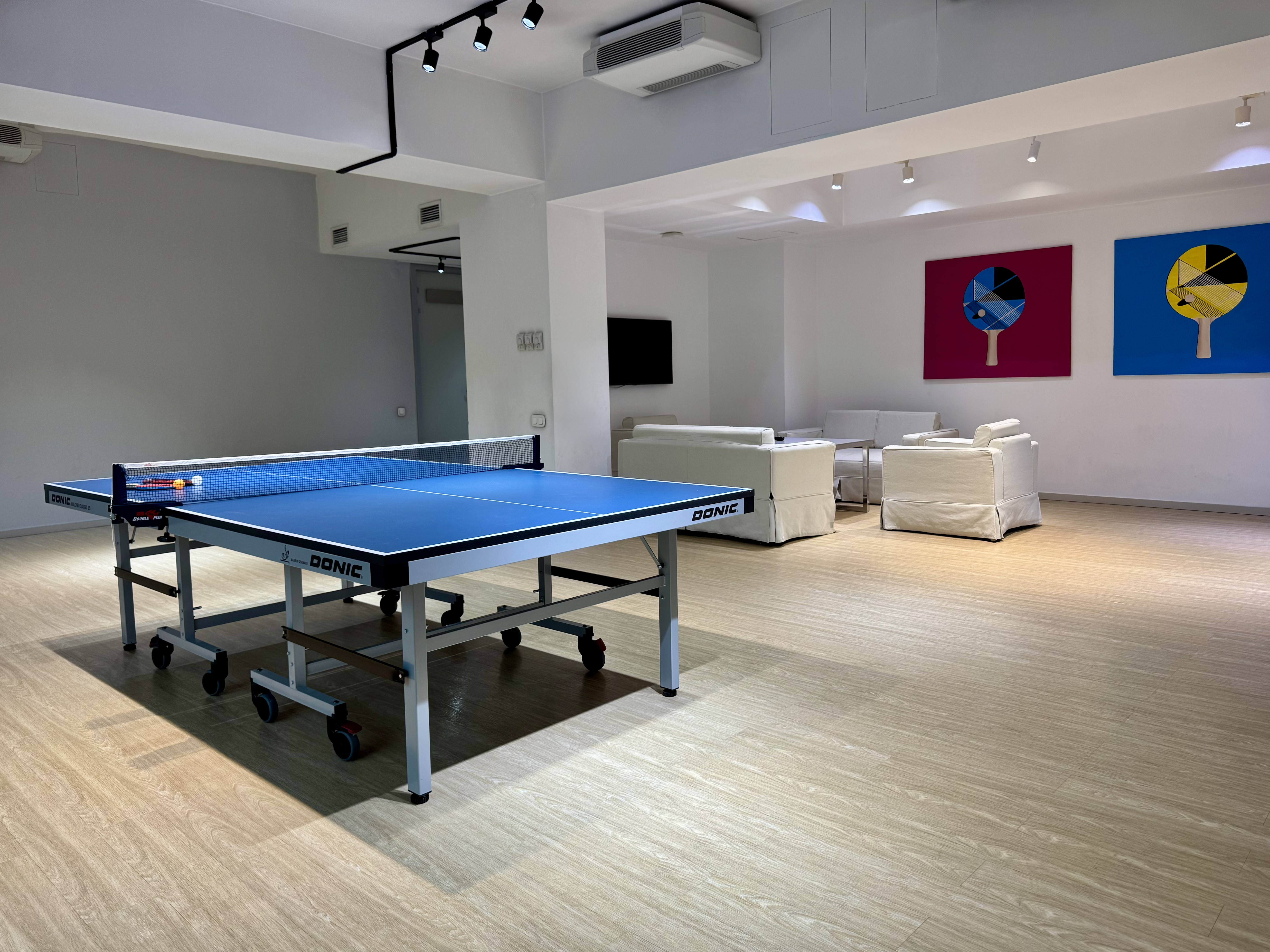 В распоряжении гостей — основной зал для занятий йогой и боди микс, малый зал для зумбы и танцевальных направлений, а также зона настольного тенниса для любителей активного отдыха.